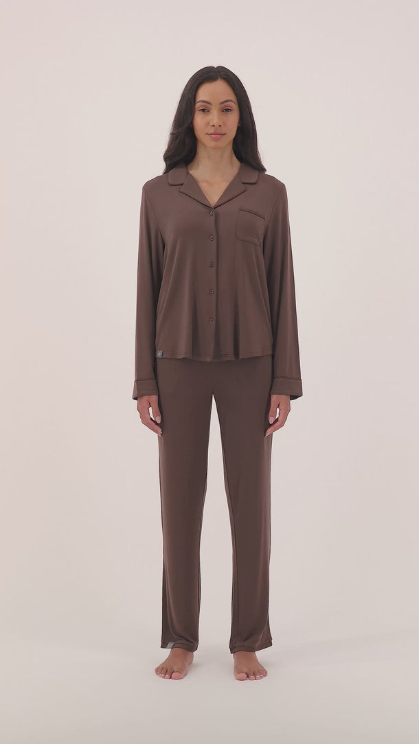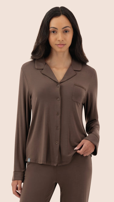 The Women's Allure Long Sleeve Pyjama Shirt is a luxurious line that combines ultimate comfort with irresistible elegance. Crafted from our signature TENCEL™ Modal x Micro Fibers, each piece in the Allure collection drapes beautifully, offering a soft touch that’s 2x softer than cotton. This lightweight fabric is temperature-regulating and breathable, offering both style and functionality. Its button-up design showcases high attention to detail, with smooth silhouettes and effortless sophistication. Complete the set with the Breezy Pants or Unwind Shorts from our collection to create your perfect cozy night look.
