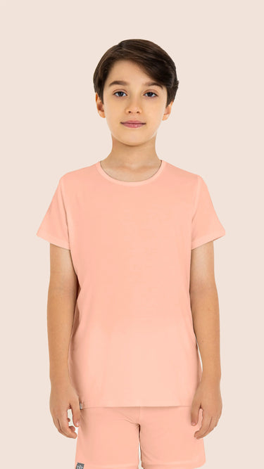 The Boys' De-stress Pyjama T-Shirt is made from sustainable TENCEL™ Modal x Micro fibers. This T-Shirt is 2x softer than cotton and more absorbent than cotton, providing an exceptionally smooth touch for unmatched comfort. The fabric's temperature regulating and breathable properties allow for a restful night’s sleep. Pair them with the Unwind Shorts or Breezy Pants to create your ideal cozy pyjama set.