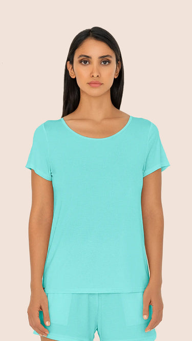 The Women's De-stress Pyjama T-Shirt is made from sustainable TENCEL™ Modal x Micro fibers. This T-Shirt is 2x softer than cotton and more absorbent than cotton, providing an exceptionally smooth touch for unmatched comfort. The fabric's temperature regulating and breathable properties allow for a restful night’s sleep. Pair them with the Unwind Shorts or Breezy Pants to create your ideal cozy pyjama set.