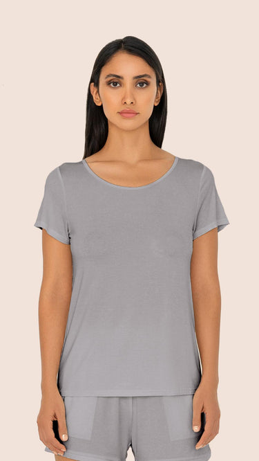 The Women's De-stress Pyjama T-Shirt is made from sustainable TENCEL™ Modal x Micro fibers. This T-Shirt is 2x softer than cotton and more absorbent than cotton, providing an exceptionally smooth touch for unmatched comfort. The fabric's temperature regulating and breathable properties allow for a restful night’s sleep. Pair them with the Unwind Shorts or Breezy Pants to create your ideal cozy pyjama set.