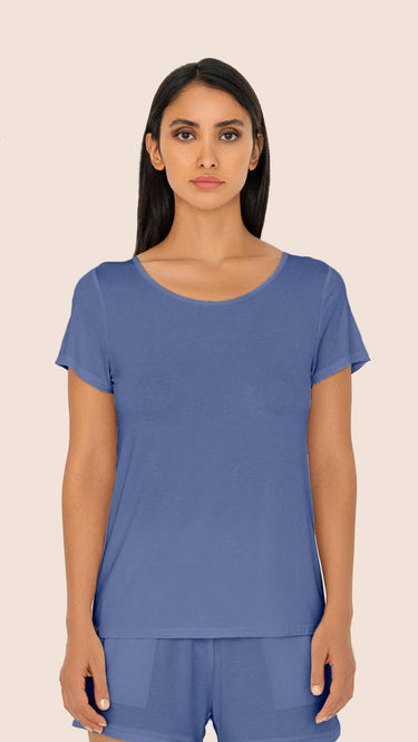 The Women's De-stress Pyjama T-Shirt is made from sustainable TENCEL™ Modal x Micro fibers. This T-Shirt is 2x softer than cotton and more absorbent than cotton, providing an exceptionally smooth touch for unmatched comfort. The fabric's temperature regulating and breathable properties allow for a restful night’s sleep. Pair them with the Unwind Shorts or Breezy Pants to create your ideal cozy pyjama set.